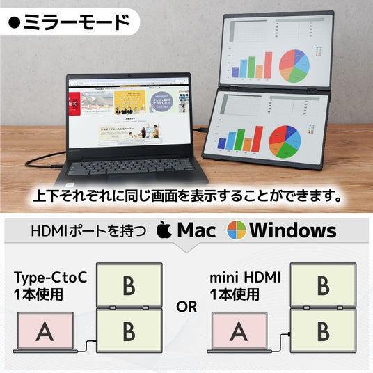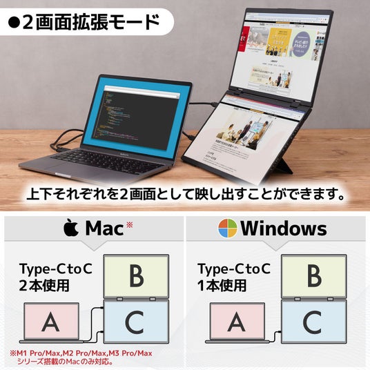 ■Mac/Windows両対応 Type-C接続のモバイルダブルディスプレイ