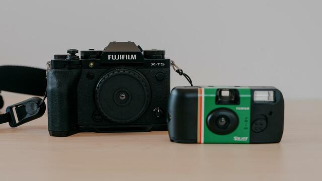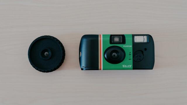 昔よく使っていた使い捨てフィルムカメラ「写ルンです」。修学旅行には、みんなこれを持って行っていました。