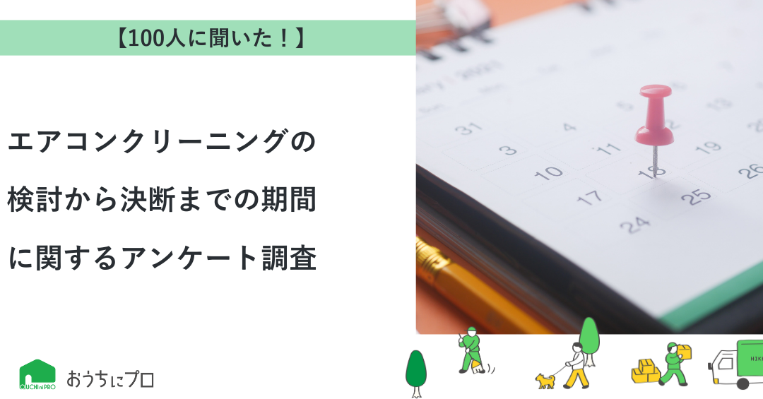 おうちにプロでは、エアコンクリーニングでお悩みの方により有益な情報を提供するために、「エアコンクリーニングの検討から決断までの期間に関する独自調査」を実施しました。アンケート調査の概要は以下の通りです。
