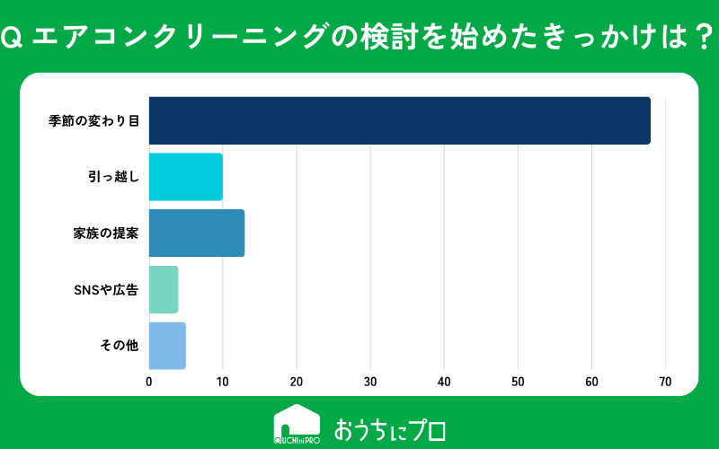 - エアコンクリーニング検討のきっかけになるのは「季節の変わり目」。