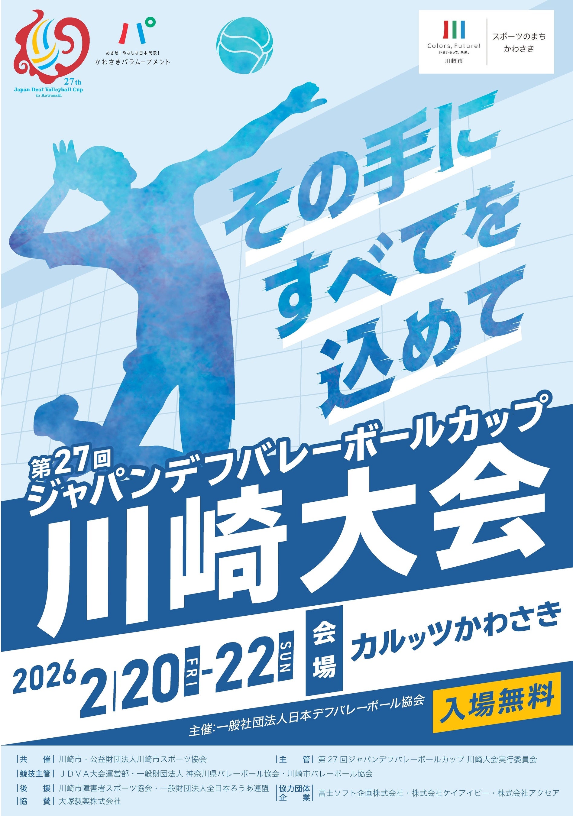 主 催 一般社団法人 日本デフバレーボール協会共 催 川崎市、公益財団法人川崎市スポーツ協会