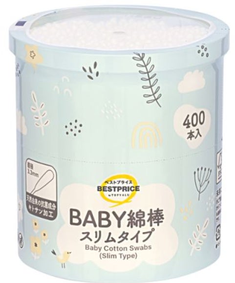 商品名:トップバリュベストプライス 1.ベビー綿棒 スリムタイプ 2.ベビー綿棒 でこぼこタイプ