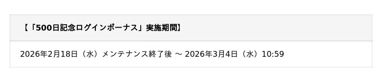 500日記念ログインボーナス