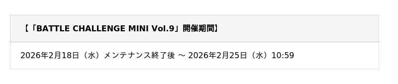 ■期間限定ガチャチケットなどがもらえる「BATTLE CHALLENGE MINI Vol.9」開催!