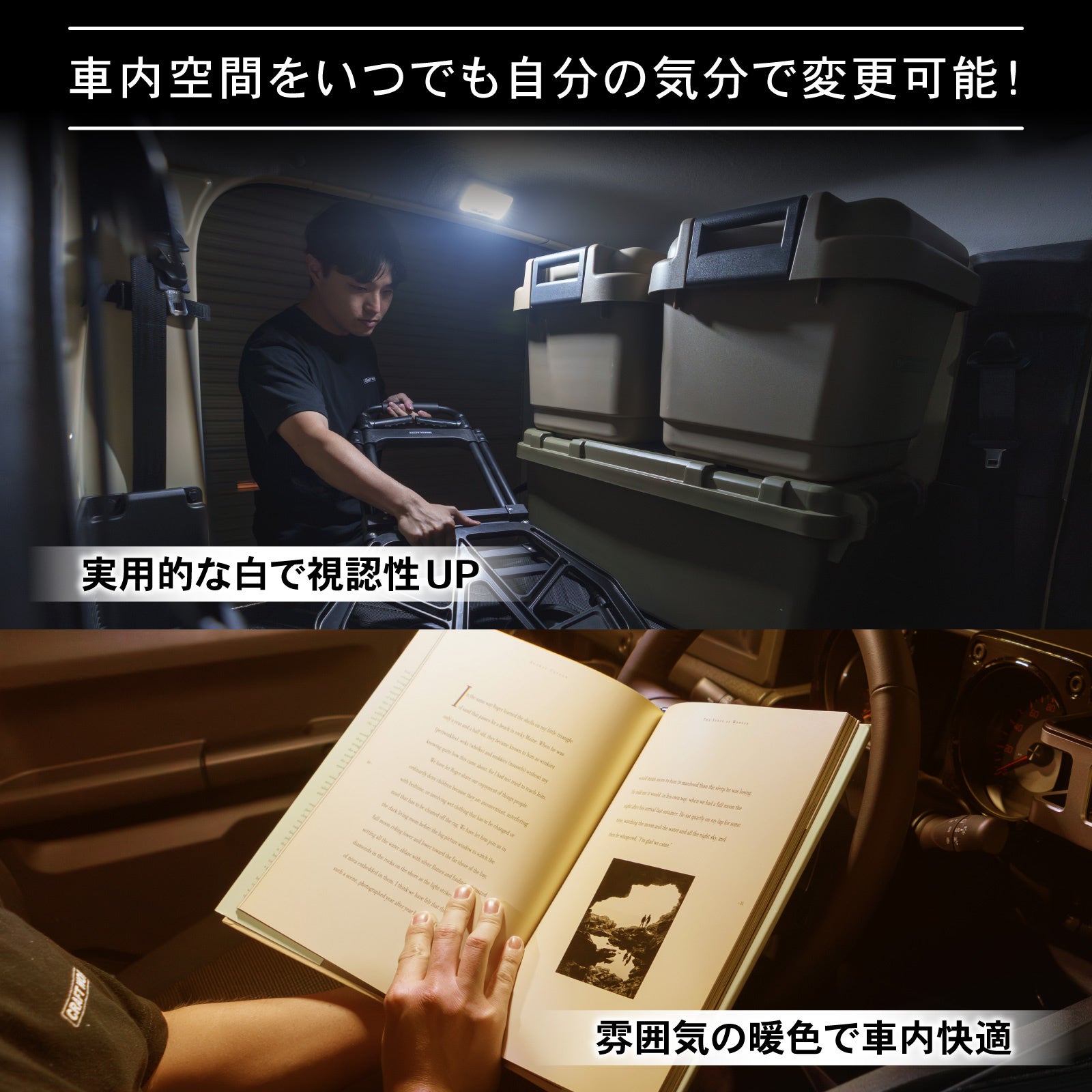 - 実用的な白で視認性UP- 雰囲気の暖色で車内快適