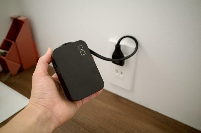 缶コーヒーと同じくらいのコンパクトサイズもさることながら、コードを本体にしまい込めるのが良いですね。これさえあれば5台分のタップを兼ねられるので、荷物をなるべく少なくしたい時には必須アイテムです。