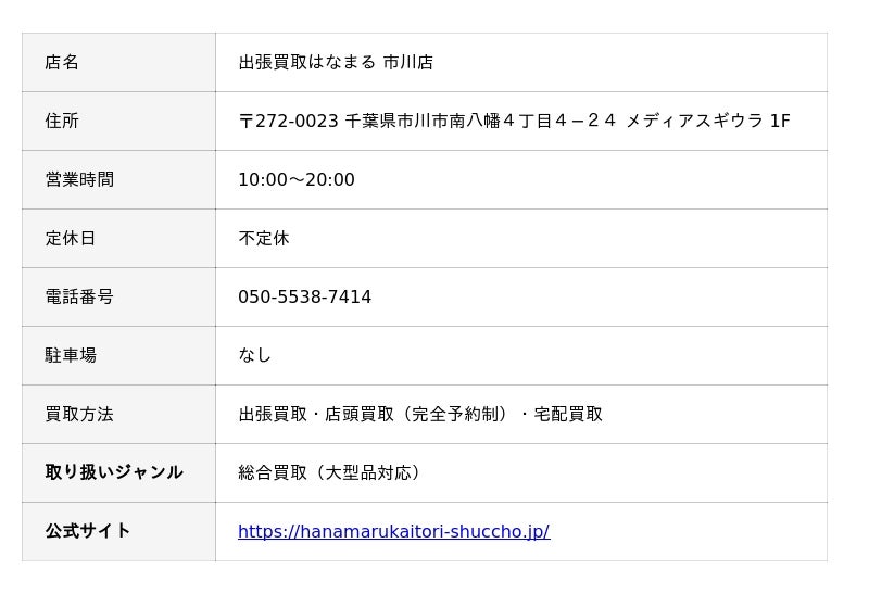 出張買取はなまる 市川店の店舗情報