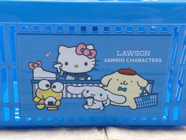 クリップ部分には、ローソンのお買い物かごからひょっこり顔を出すけろっぴの姿。さらに持ち手部分には、店員さん姿のキティちゃんも登場していて、にぎやかでどこか懐かしいデザインです。