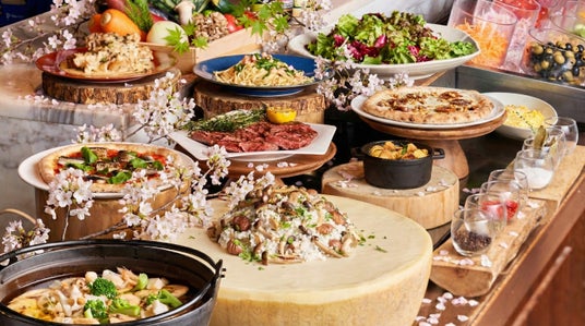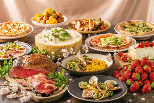 おすすめメニューは、ローストビーフと、提供時に仕上げる削りたてグラナ・パダーノチーズと黒トリュフのリゾット。さらに、魚介のナポリ風ブイヤベースや、桜海老とからすみ、筍のアーリオオーリオ、菜の花と燻製モッツァレラのピッツァなど、本格イタリアンをお楽しみください。