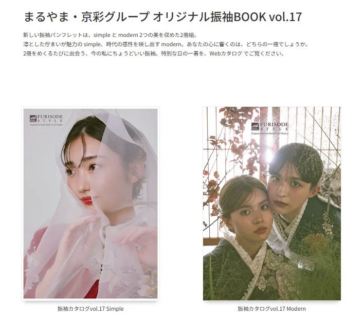 今回、まるやま・京彩グループが衣装提供した振袖のほかにも、多数のラインナップを下記よりご覧いただけます。