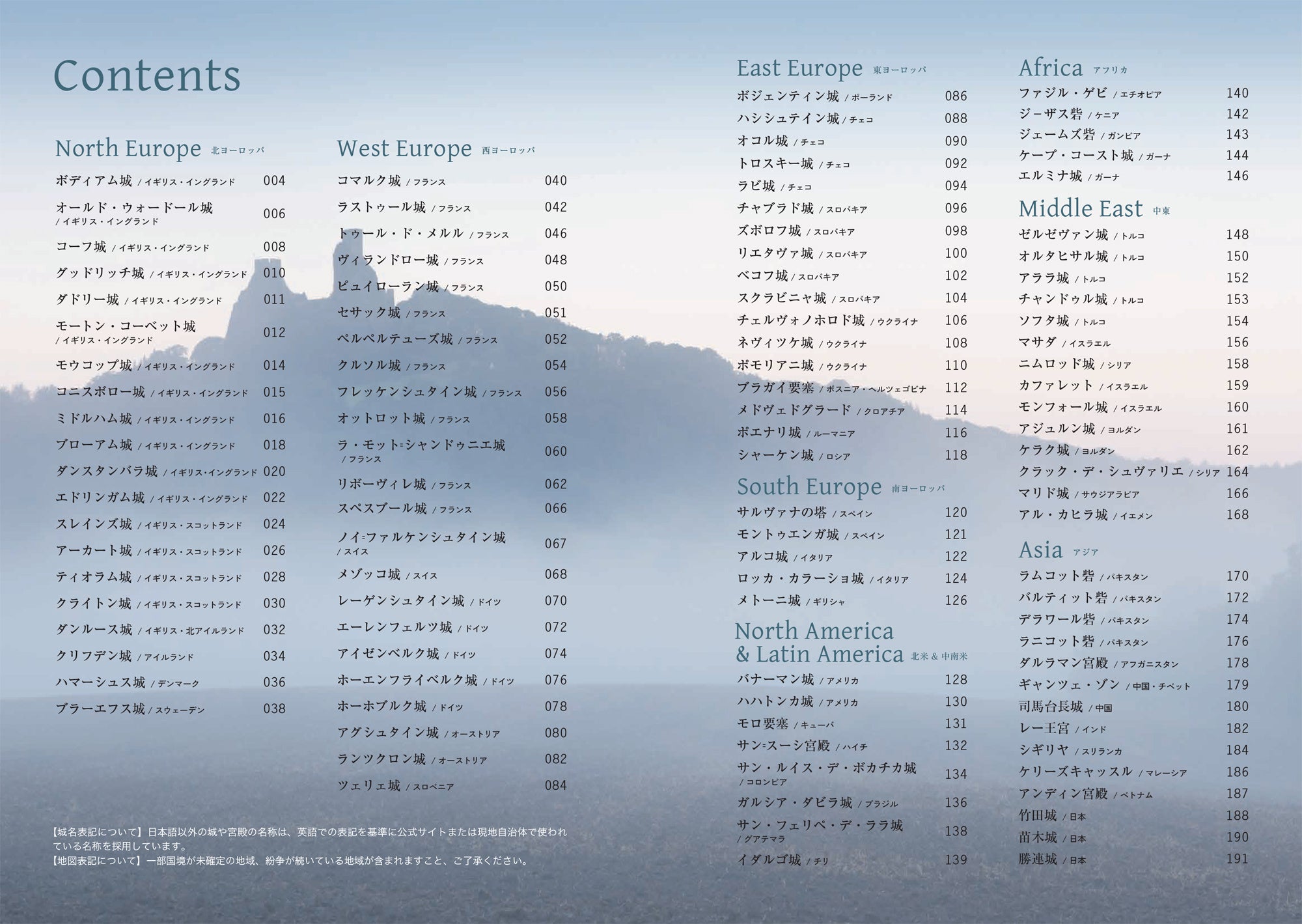 【北ヨーロッパ】ボディアム城/オールド・ウォードール城/コーフ城/グッドリッチ城など【西ヨーロッパ】コマルク城/ラストゥール城/トゥール・ド・メルル/ヴィランドロー城など