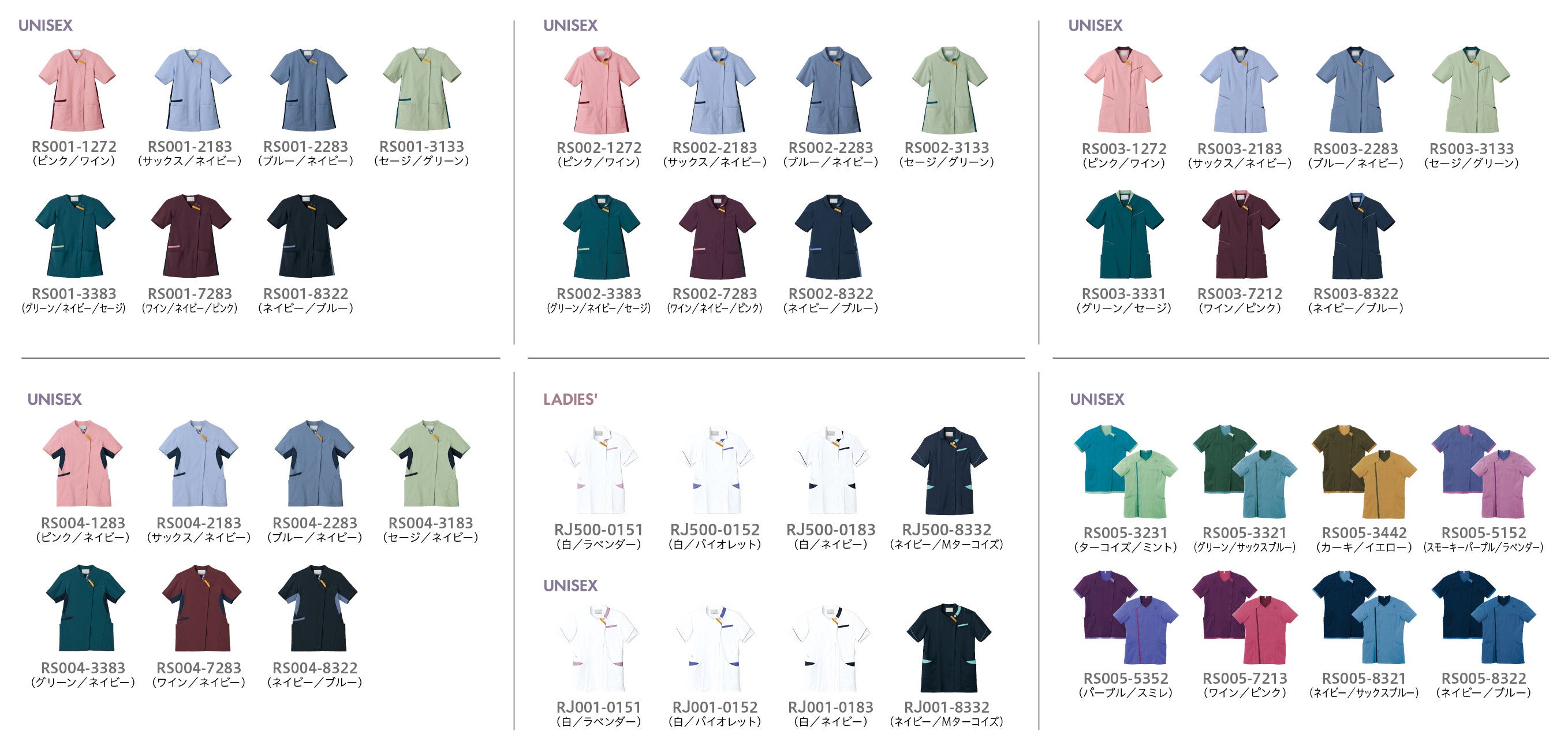 今回リリースする【ラクモ】シリーズはスクラブ5型、ジャケット2型の計7型。