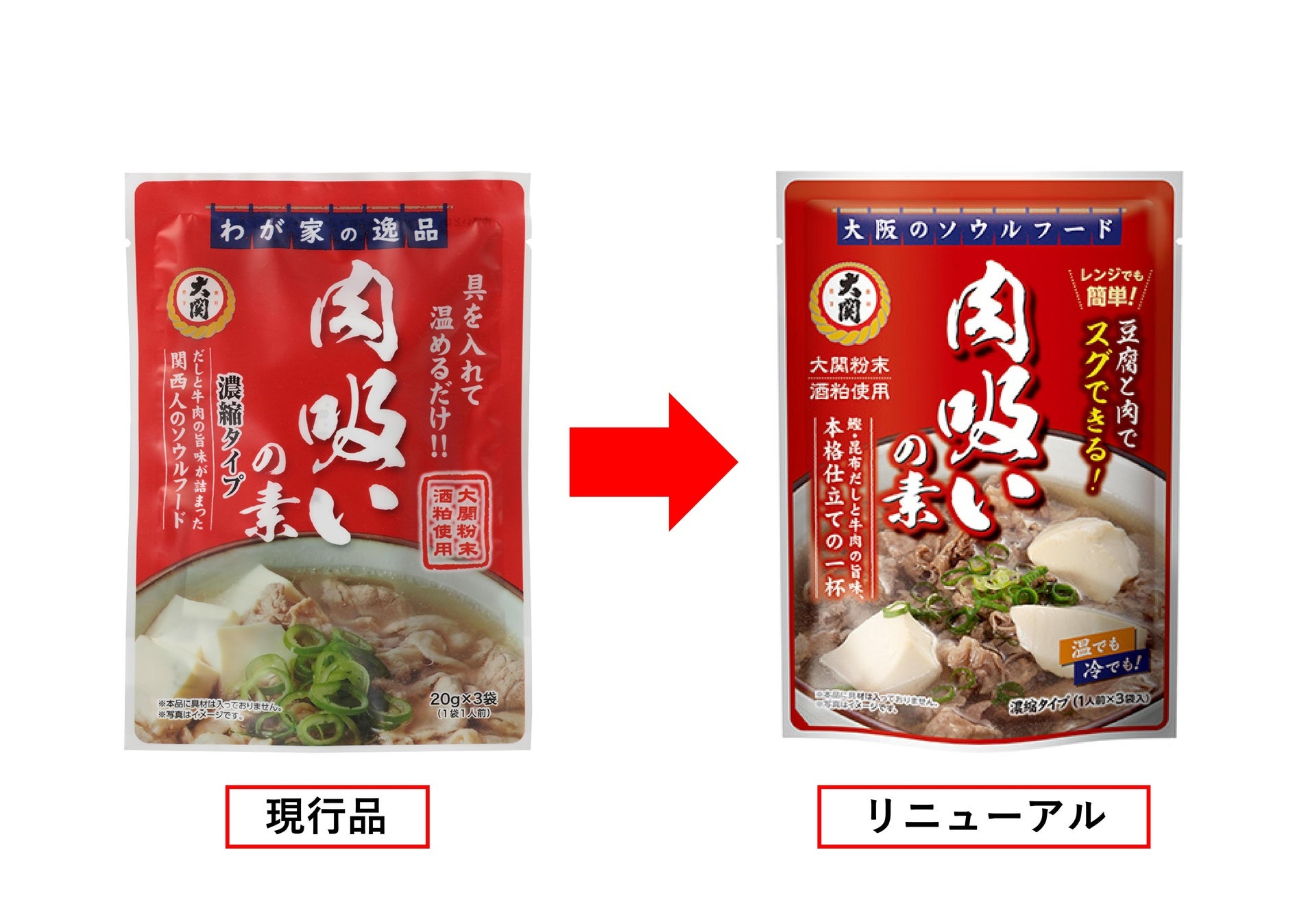 大関株式会社(兵庫県西宮市、社長:長部訓子)は、通年商品として販売しております「大関 肉吸いの素20g3袋詰」をパッケージリニューアルし、2026年3月2日(月)から全国で再発売いたします。ご家庭で手軽に、大阪のご当地グルメ「肉吸い」の本格的な味わいを楽しんでいただける商品です。