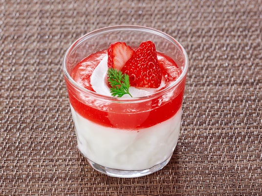 杏仁豆富いちごジュレ特製の杏仁豆富と濃厚な甘みが特徴のあまおうのジュレの絶妙な組み合わせを楽しめます。