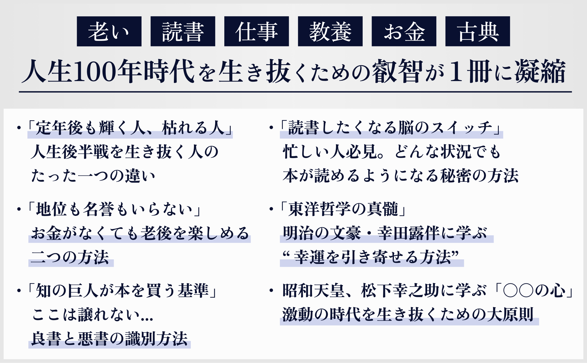 ・ 人生100年時代の後半戦を知的に生き抜く方法