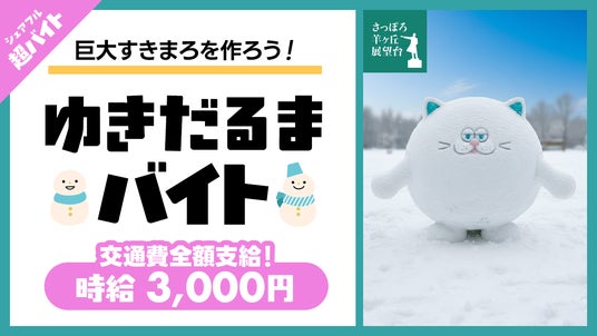 「はたらいて、笑おう。」をビジョンに掲げるパーソルグループのスキマバイトアプリ『シェアフル』やSaaSシフト管理サービス『シェアフルシフト』、就業実績を活用した人材紹介サービス『シェアフルエージェント』などを提供するシェアフル株式会社(本社:東京都港区、代表取締役社長:横井 聡)は、一般社団法人札幌観光協会が運営するさっぽろ羊ヶ丘展望台にて、2026年3月1日(日)に雪像を制作する「ゆきだるまバイト」を『シェアフル』超バイトで募集します。