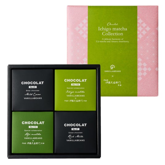 横浜発のクラフトチョコレート専門店VANILLABEANS(バニラビーンズ)を運営するチョコレートデザイン株式会社(代表取締役:大槻昌弘、本社所在地:横浜市)は2026年2月16日(月)から、オンラインショップにて京都の老舗お茶屋・伊藤久右衛門とのコラボレーション商品「ショーコラ・いちご抹茶」を含めた4個入を数量限定で再販いたしました。
