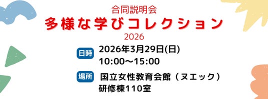 多様な学びプラットフォーム、NPO法人にじの絲、リ・ヌエックの3団体は、2026年3月29日(土)に国立女性教育会館(ヌエック)講堂にて、「合同説明会 多様な学びコレクション2026」を開催いたします。