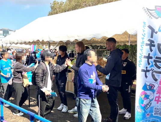 特設ブースでは、「イチナナクラブ」のリニューアルスタートを記念したPRイベントを行いました。ブースにはゲートオープン前から豊田陽平クラブ・コンダクターが登場し、来場したサポーターとのハイタッチ会を実施。さらに、先着2,000名様には記念グッズ「トヨフォト」のプレゼントがあり、多くの方に喜んでいただきました。さらにハイタッチ会の後半には、櫻井辰徳選手、ジョー選手、ヴィキンタス・スリヴカ選手の3名も参加し、ブースはさらに活気に包まれました。