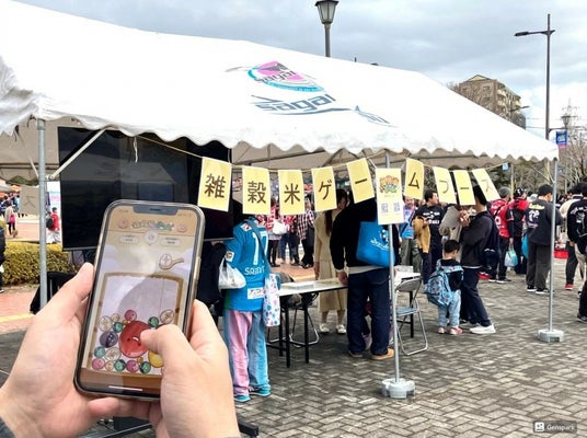 また、ゲート前では2月12日に配信を開始したスマートフォン向けパズルゲーム「雑穀米ゲーム」の体験ブースも出展。幅広い世代の来場者が立ち寄り、ゲームを楽しむ様子が見られました。