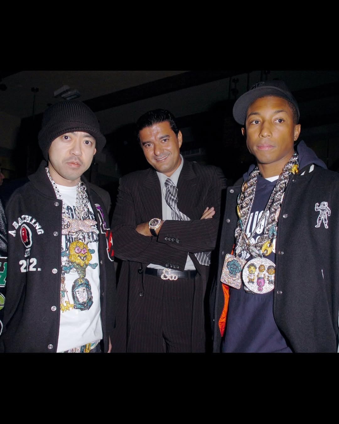 2000年代初頭、NIGO(R)はジェイコブ・アラボにカスタムジュエリーの制作を依頼していました。両者の創造性と感性に強い共鳴を見出したジェイコブは、ファレル・ウィリアムスとNIGO(R)を引き合わせます。この出会いは、後にファッション、音楽、そしてラグジュアリーの領域において、世界的な文化的影響をもたらす創造的パートナーシップの出発点となりました。