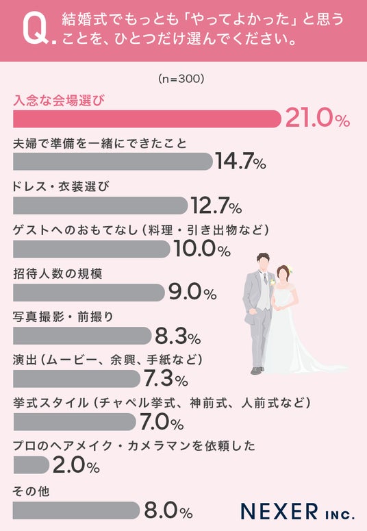 ■21%が、結婚式でもっとも「やってよかった」と思うことは「入念な会場選び」