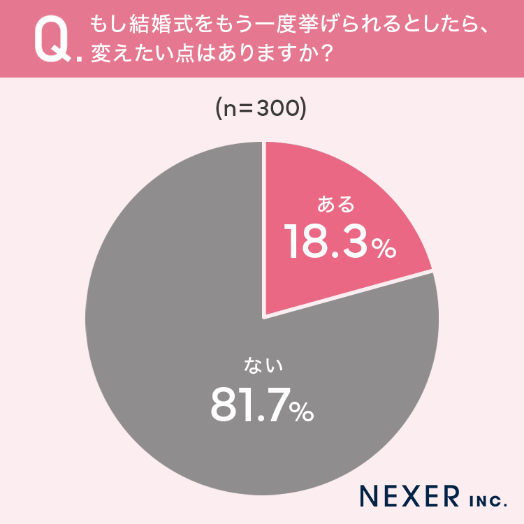 ■18.3%が、もし結婚式をもう一度挙げられるとしたら、変えたい点は「ある」