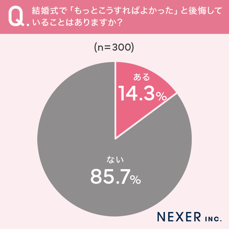 ■14.3%が、結婚式で「もっとこうすればよかった」と後悔していることは「ある」