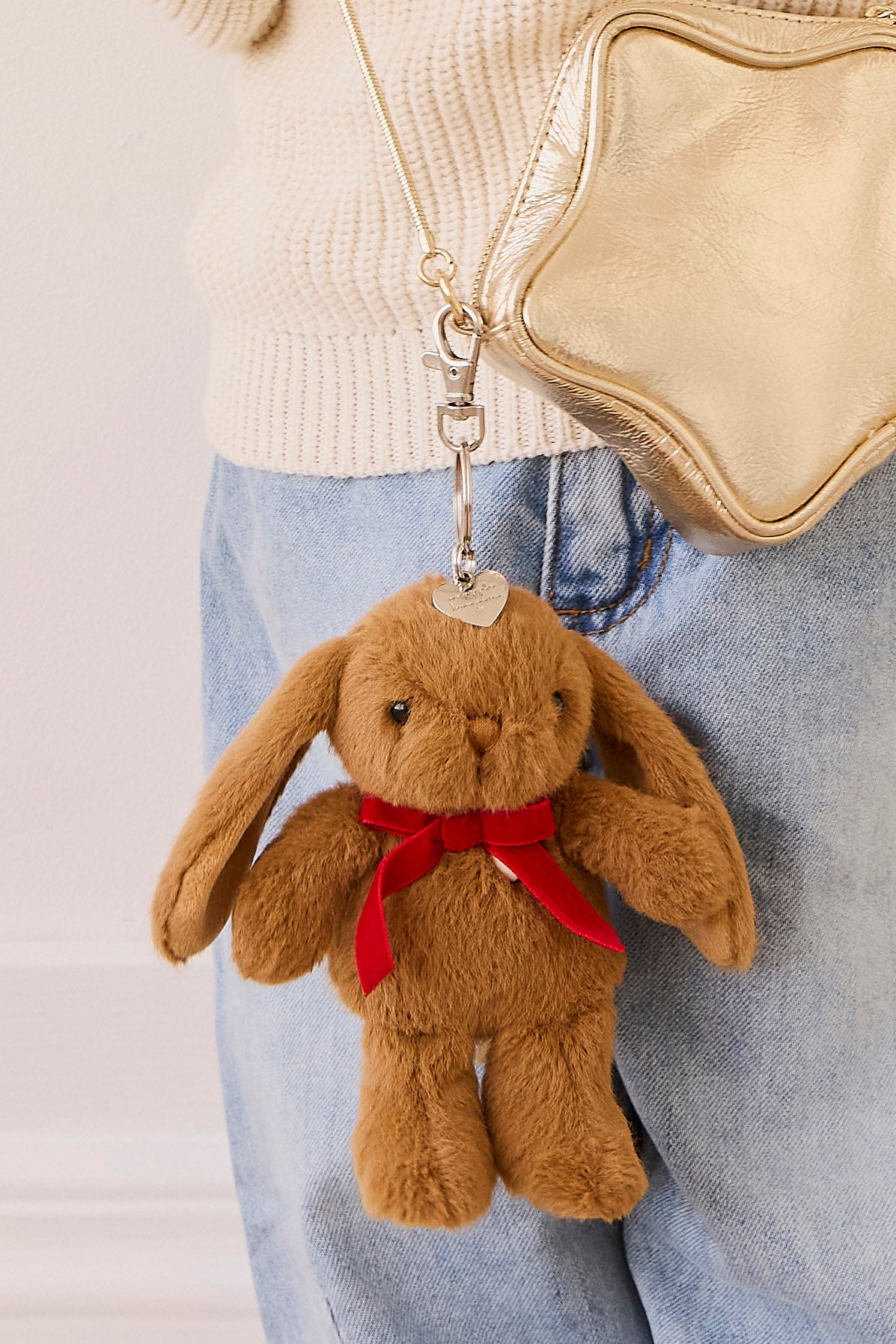 大きさ15cmのキーリングが付いたぬいぐるみチャーム。ブラウンとラベンダーの2色が銀座ロフト先行発売アイテムです。バッグやポーチ、ベビーカーに付けるだけで、大人も子どもも毎日のお出かけが少し楽しく。