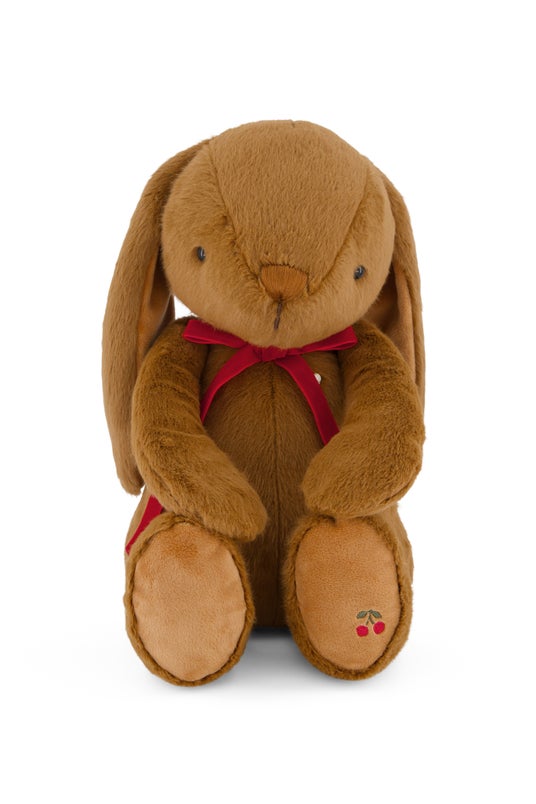 スナグルバニーズで大人気の「うさぎのペネロペ」に、45cmのビッグサイズが新登場。足裏のチェリーとハートの刺繍がそれぞれチャーミングな、ブラウンとラベンダーの2色を銀座ロフトにて先行発売いたします。新生児ベビーと同じくらいの大きさで、ベビーが成長したあともぎゅっと抱きしめたくなる存在感です。