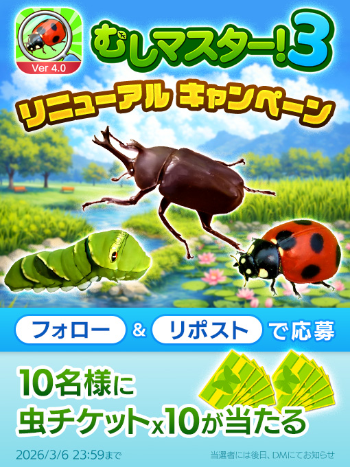 虫探しゲームアプリ『むしマスター!3』大型アップデート&リニューアルキャンペーンを開催! -