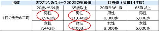 参加者の平均歩数は、厚労省が推進する健康日本21の令和14年度目標値を男女とも大幅に達成