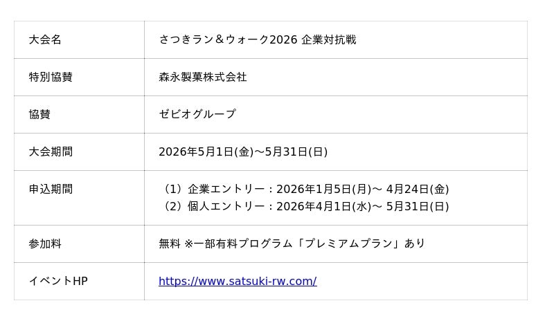 「さつきラン&ウォーク2026 企業対抗戦」企業エントリー受付中!