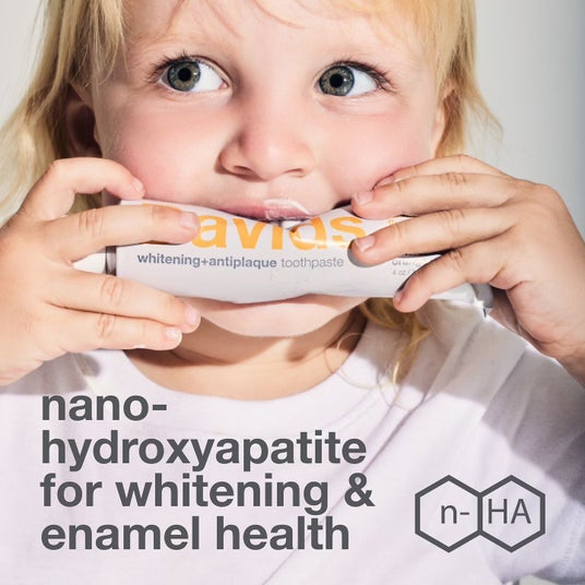 - 独自成分 Hydroxi(TM): ナノヒドロキシアパタイト(n-HAp)*を配合。 わずか50ナノメートルの理想的な粒子がエナメル質の微細な傷に入り込み、歯の表面をなめらかに整え、自然な白さへと導きます。
