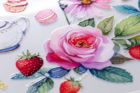 デジタルバーニッシュ加工によるアクセントが加わっているクリアロールシール