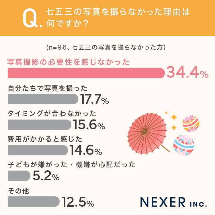 ■34.4%が、七五三の写真を撮らなかった理由は「写真撮影の必要性を感じなかった」と回答