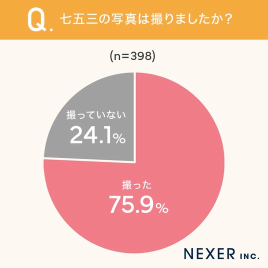 その結果「撮った」が75.9%、「撮っていない」が24.1%でした。4人に3人以上が、七五三の記念写真を撮影していることがわかります。七五三という節目を写真という形で残しておきたいと考える家庭が大多数を占めているようです。