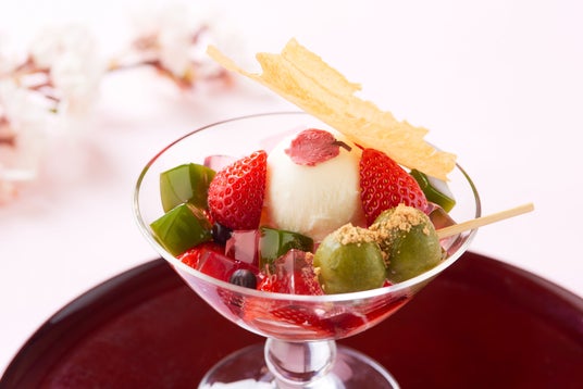 あまおうと抹茶の和風パフェ~桜恋~(日本料理「千羽鶴」)