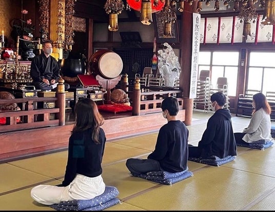 町内の寺院では、本堂での瞑想体験を行っています。