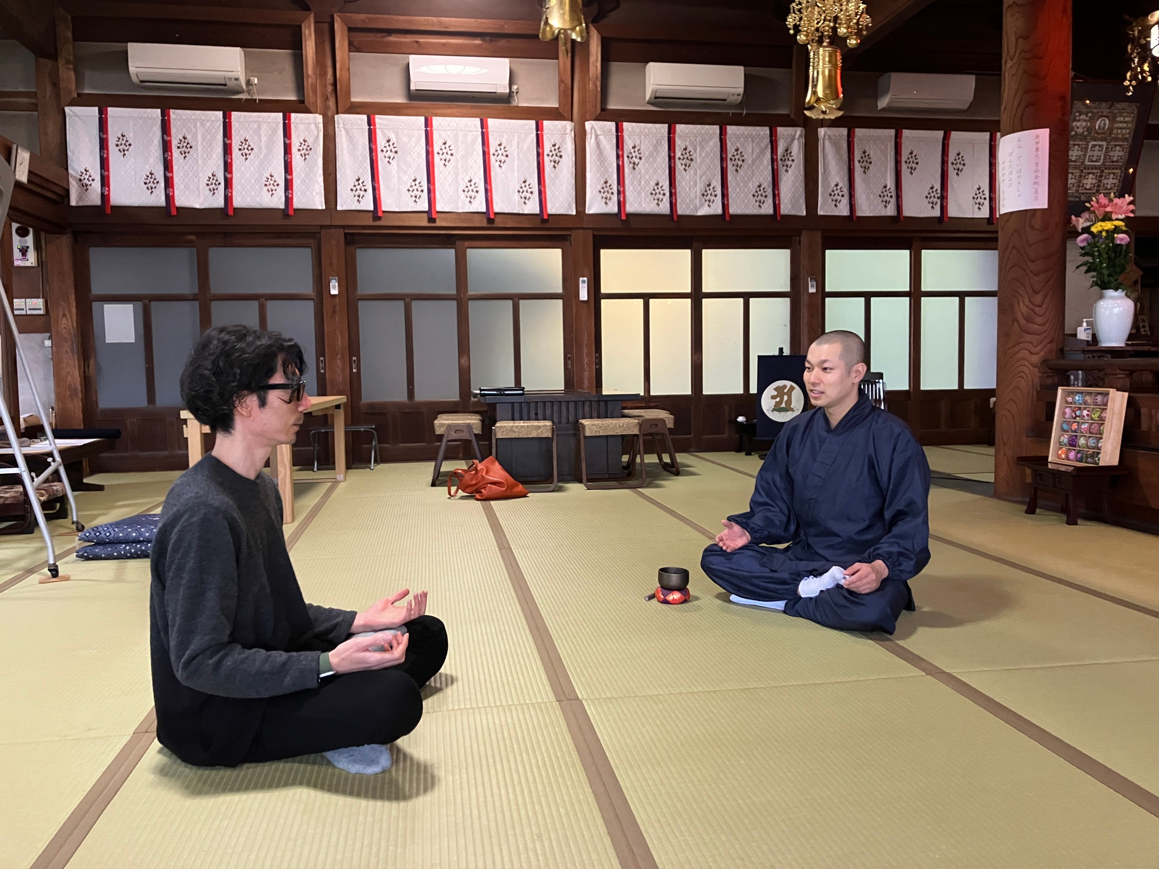畳の上に座り、ゆっくりと呼吸を整え、住職の案内に耳を傾ける時間。