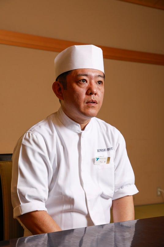 「びわ湖魚グルメ」は、2022年7月に世界農業遺産に認定された「琵琶湖システム」の認知拡大を目的に、滋賀県が生産者・事業者と連携して2023年にスタートした取り組みです。びわ湖で獲れる湖魚と滋賀県産農産物を使用し、四季を通じて提供できる持続可能な食のモデルとして展開されています。琵琶湖ホテルでは、2023年度に鮒ずしの「飯」を出汁に使った「びわ湖鍋」が楽しめる会席料理を提供、2024年度にはクラブラウンジで湖魚を使ったオードブルなどの提供を行いました。同プロジェクトを通して開発した「びわ湖魚グルメ」をおいしくお召し上がりいただくことで、びわ湖の恵みである魚や県産農産物の魅力をPRし、我々飲食・宿泊事業者は、守り手(生産者)と買い手(消費者)の間をつなぐ“繋ぎ手”としての役割を果たしたいと考えています。