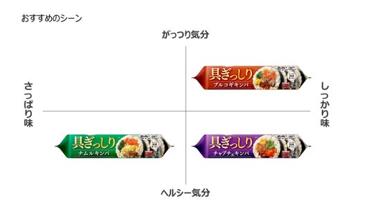 『具ぎっしり プルコギキンパ』『同 ナムルキンパ』『同 チャプチェキンパ』リニューアル発売