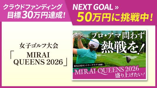 株式会社ファーストイノベーション(本社:東京都中央区、代表取締役社長:木ノ根雄志、以下ファーストイノベーション)は、2026年3月11日(水)本戦、12日(木)に開催予定の女子ゴルフトーナメント「ゴムノイナキカップ 愛知レディスオープンゴルフトーナメント MIRAI QUEENS 2026」を支援するクラウドファンディングにおいて、目標金額30万円を達成し、新たにネクストゴール50万円へ挑戦することをお知らせいたします。