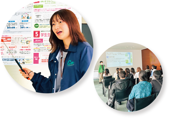 入学準備説明会で新入生をサポート大学生協は入学準備サポートが充実。先輩の知恵や情報をもとに「入学準備説明会」や「新入生サポートセンター」を行っています。ぜひご利用ください。