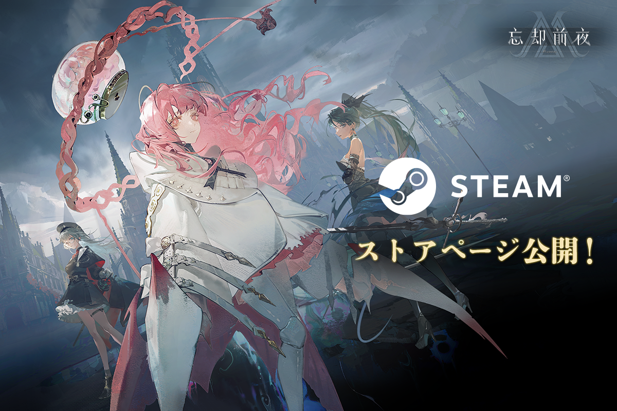 Steam版『忘却前夜』について、Steamストアページを公開しております。ウィッシュリストに登録いただくことで、リリース日やセール情報などの最新通知をいち早く受け取ることが可能です。配信開始を見逃さないよう、ぜひウィッシュリストへご登録ください。