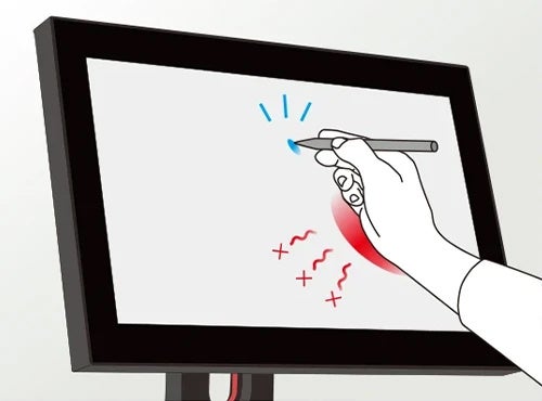 手のひらや手の側面が画面に触れても誤入力を防ぐ「パームリジェクション機能」を搭載。ペン入力時の安定した操作をサポートします。