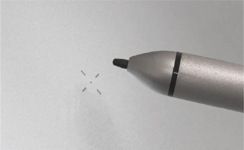 スタイラスの先をモニター画面に近づけると、先端の位置が画面上に表示されるので、狙った位置に書き込みが可能です。
