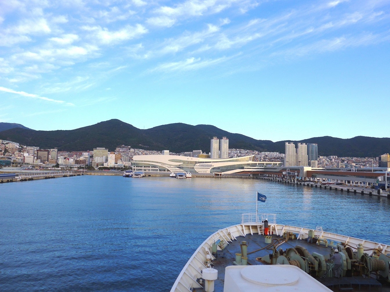 釜山港へ入港する関釜フェリー「はまゆう」からの画像!