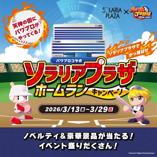 西日本鉄道株式会社が運営するソラリアプラザでは、2026年3月13日(金)~29日(日)の期間、KONAMIの人気野球ゲーム「パワフルプロ野球」とコラボレーション企画「ソラリアプラザ ホームランキャンペーン」を開催します。