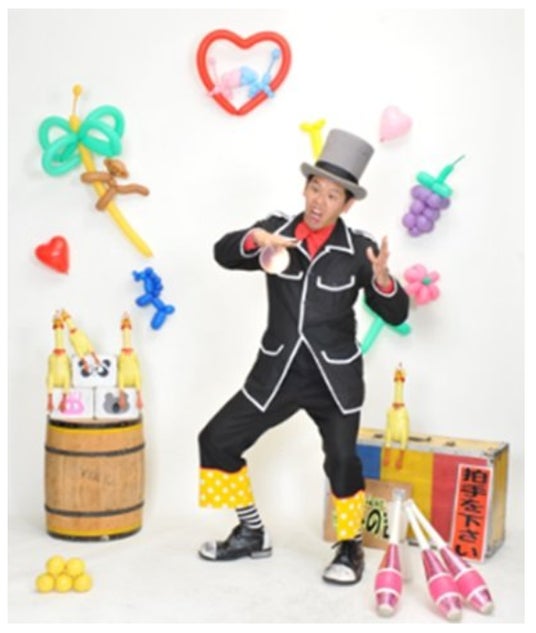 愛媛を拠点に活動中の みの吉 による、笑顔あふれる ドタバタジャグリングショーを披露していただきます。笑顔がチャーミングなお茶目なみの吉は、ほのぼのとした見た目とはうらはらに、一瞬一瞬の演技で大人も子どもも笑顔いっぱい!さまざまな道具を使った、ドキドキ・ワクワクの楽しいショータイムです。